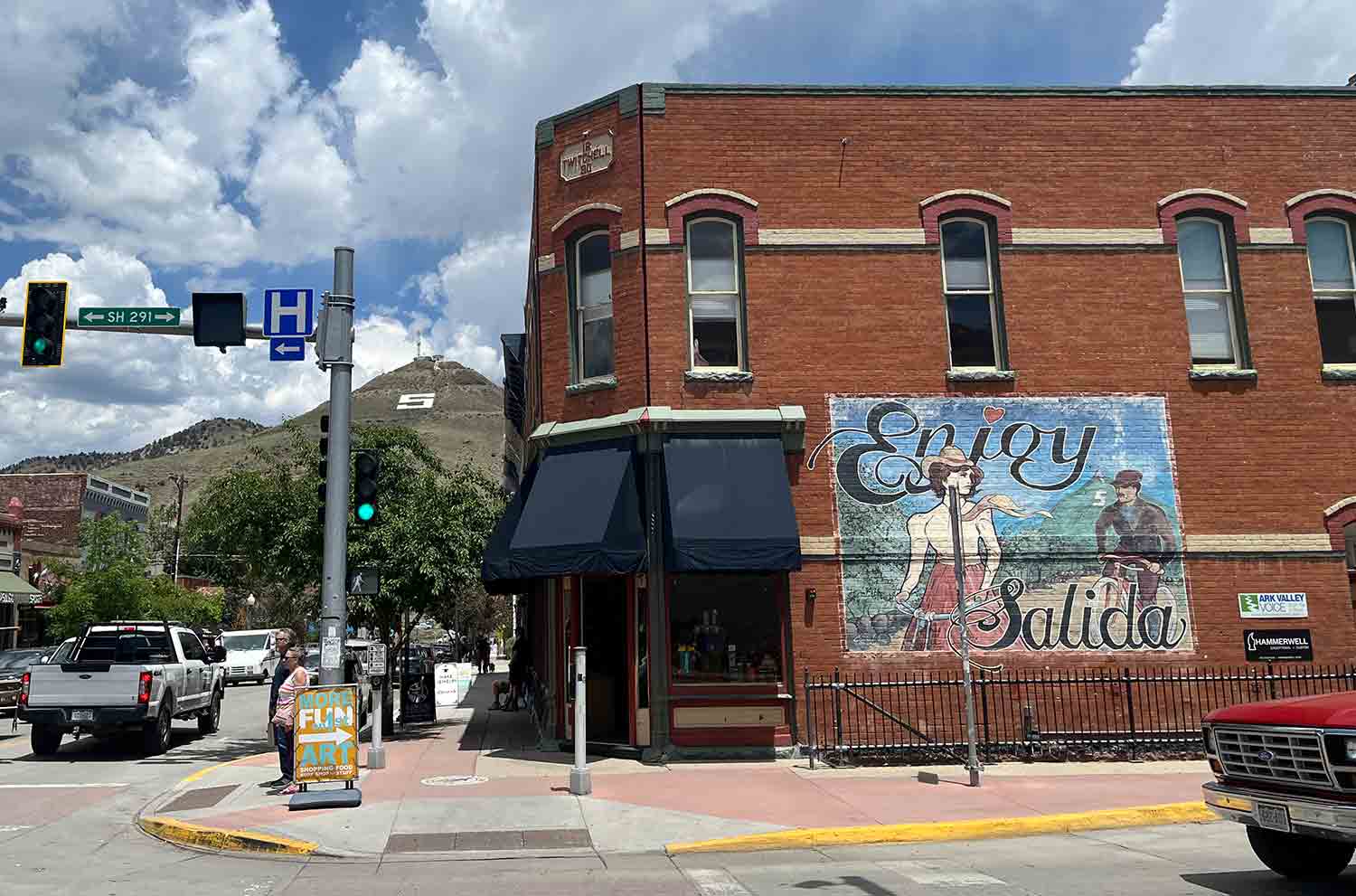 The town of Salida is positioned at the northernmost point of the Sangre de Cristos. Near the end of our journey, we would be 75 miles away at the southernmost point, in Santa Fe, having continually hugged the edge of the range during our travels, which I found comforting. I hadn’t been to Salida before, but it was only an hour and a half from Little Bear, and another friend had recommended it to us for its art community, good restaurants, and access to lots of fun places to visit. I loved it immediately.
